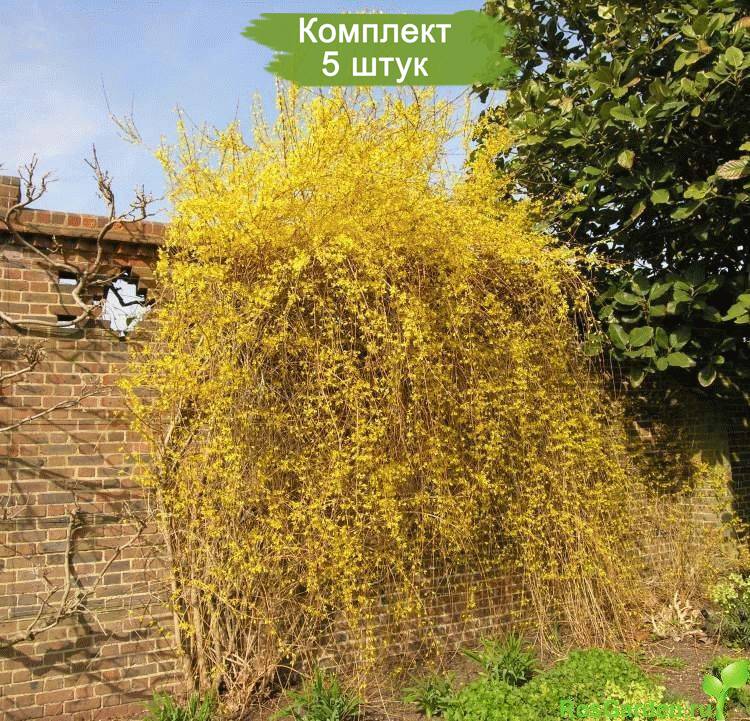 Саженцы форзиции Свисающая (Пониклая) - 5 шт. Отличное предложение! Набор из 5 саженцев по цене 4