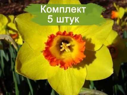 Нарцисс Пинза (Pinza) - это многолетнее растение с узкими листьями и крупными цветами, достигающими 9 см в диаметре. Цветы имеют насыщенный желтый оттенок и глубокую красновато-оранжевую корону с прямыми краями, которая светлеет к основанию, создавая эффектный контраст.