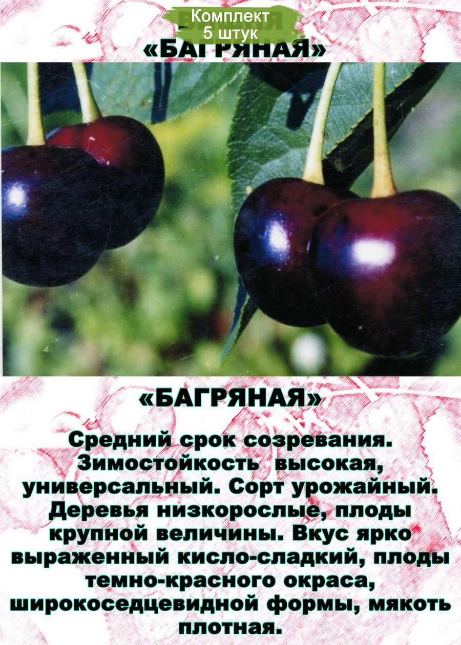 Саженцы вишни сорта "Багряная Средняя" - комплект из 5 штук по цене 4. Отличное предложение!