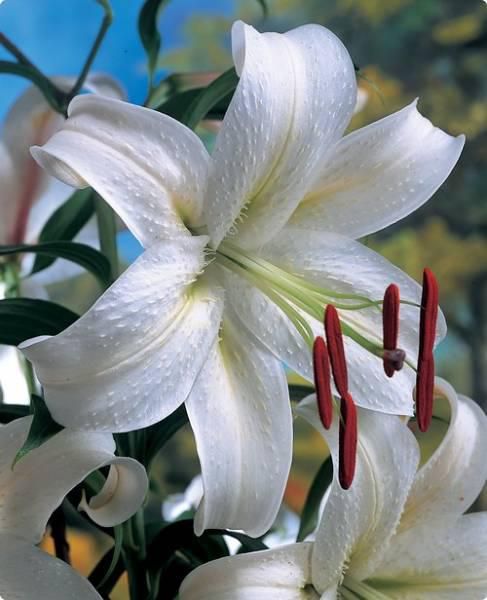 1. Великолепный внешний вид: крупные белоснежные цветки с контрастными пыльниками.