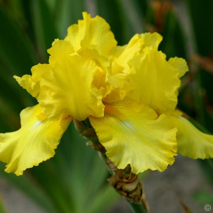 Ирис германский Октобер Сан (October Sun) представляет собой многолетнее растение, которое станет настоящим украшением вашего сада. Высота растения достигает 80-90 см, а цветение начинается в июне. Цветки имеют оригинальную форму и располагаются на прочных, разветвленных цветоносах. Крупные лимонно-желтые цветки диаметром до 15 см привлекают внимание своей яркостью и элегантностью.